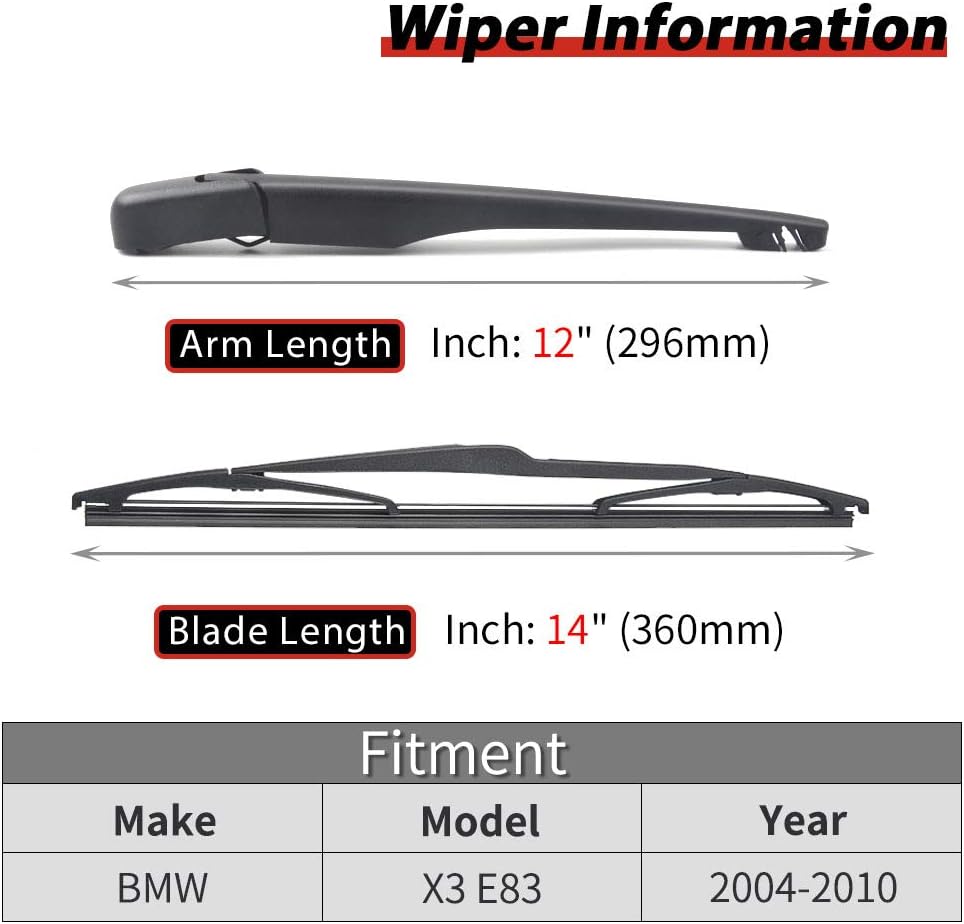 Amazon Com Replacement For Bmw X3 E83 2004 2005 2006 2007 2008 2009 2010 Rear Windshield Wiper Arm And Blade Kit Oe 61623400708 Automotive